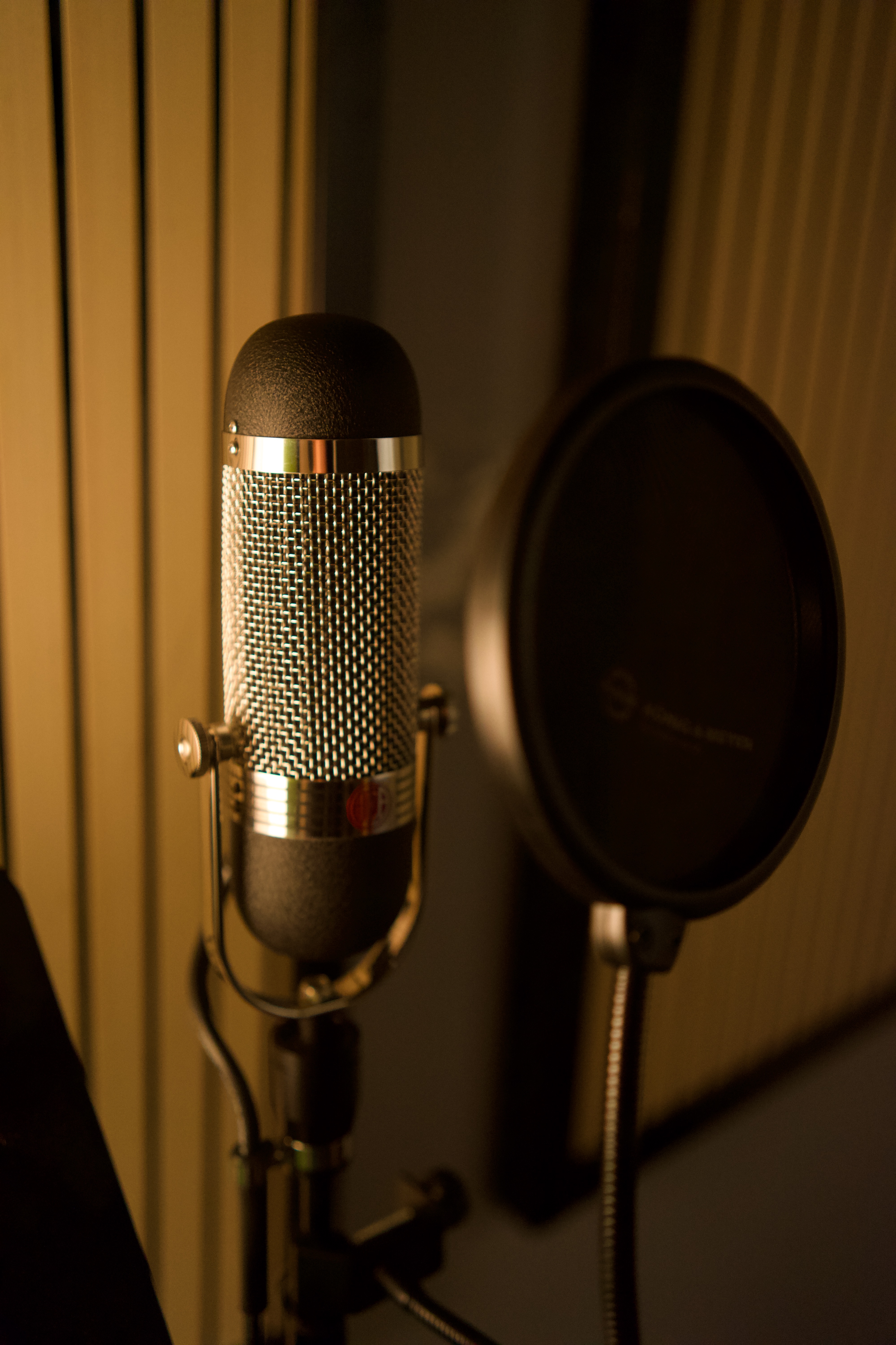 Mics: 2x Neumann u89i, AKG C414 XLS matched pair, Shure sm57, Shure Brothers Unidyne B 515SA, Shure Unidyne III, AKG D12, AKG D112, 3x Sennheiser MD-421 II, 2x Sennheiser MD-441-U, Shure sm7B, 2x AEA R84, Neumann KM184 matched pair